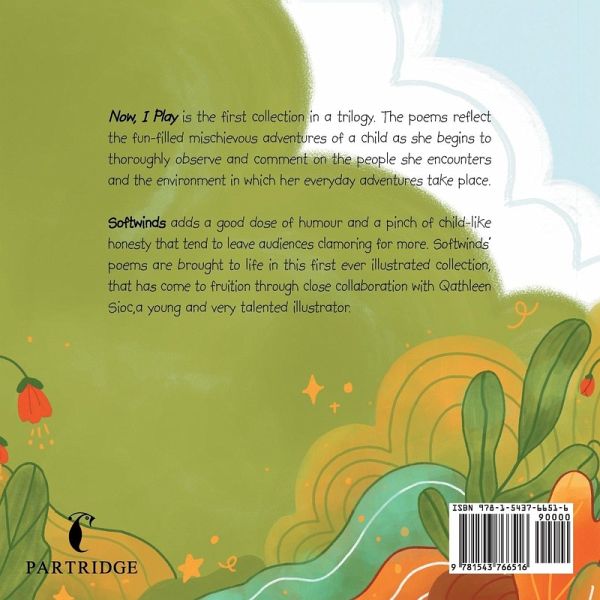 "Now, I Play" is the first collection in a trilogy. The poems reflect the fun-filled mischievous adventures of a child as she begins to thoroughly observe and comment on the people she encounters and the environment in which her everyday adventures take place. Softwinds adds a good dose of humour and a pinch of child-like honesty that tend to leave audiences clamoring for more. Softwinds' poems are brought to life in this first ever illustrated collection, that has come to fruition through close collaboration with Qathleen Sioc, a young and very talented illustrator.