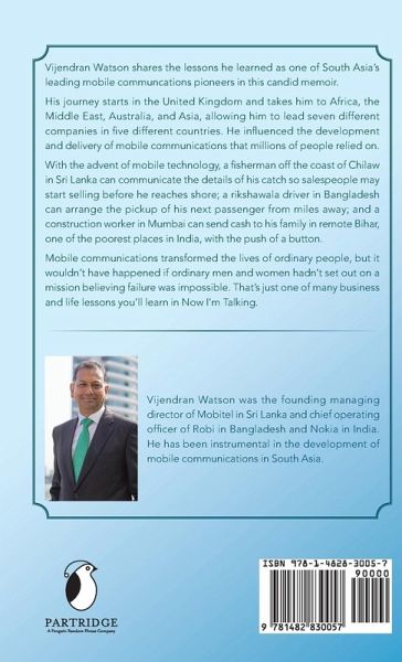 Vijendran Watson shares the lessons he learned as one of South Asia's leading mobile communcations pioneers in this candid memoir. His journey starts in the United Kingdom and takes him to Africa, the Middle East, Australia, and Asia, allowing him to lead seven different companies in five different countries. He influenced the development and delivery of mobile communications that millions of people relied on. With the advent of mobile technology, a fisherman off the coast of Chilaw in Sri Lanka can communicate the details of his catch so salespeople may start selling before he reaches shore; a rikshawala driver in Bangladesh can arrange the pickup of his next passenger from miles away; and a construction worker in Mumbai can send cash to his family in remote Bihar, one of the poorest places in India, with the push of a button. Mobile communications transformed the lives of ordinary people, but it wouldn't have happened if ordinary men and women hadn't set out on a mission believing failure was impossible. That's just one of many business and life lessons you'll learn in Now I'm Talking.