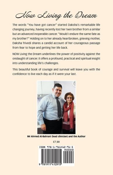 NOW Living the Dream: A Tale of Surviving Cancer by Daksha Trivedi is a testament to her brave journey through an aggressive cancer which brings to light the power of hope as she learns to accept uncertainty. Daksha’s story of endurance began long before receiving an unexpected and a devastating diagnosis of cancer in her lower oesophagus. She had hardly come to terms with the painful loss of her twin brother from advanced cancer only six months earlier but finds courage to bring solace to her elderly widowed mother who had lost both her beloved sons. Her journey takes us through her diagnosis, the challenges of treatment decisions and recovery from a life- threatening oesophagostomy. Her deeply moving story, whilst that of survival embraces the reality of her condition and conveys profound themes of relentless determination and a commitment to positive strategies at a time of pain and suffering. This book highlights the patient’s and the family’s distress and encourages health care professionals to find ways of engaging with people from different cultures, especially where there is a family history of cancer. Her remarkable story is an inspiration to patients, families and practitioners and provides a valuable insight into finding courage to cope with adversity. It acknowledges a dearth of research evidence on oesophageal cancer, though great strides are being made to detect early conditions that can increase a person’s risk of developing cancer. This poignant and human story draws together everything Daksha and her family have realised about living well in the moment. She also discovers the true meaning of faith, love and hope as she begins to talk about cancer. In her honest and inspiring account, she shares her learnings to live a life full of purpose, being deeply grateful for the gift of time. This book was completed in the shadow of the Coronavirus (Covid-19) pandemic. The author intends to donate proceeds from the sale of this book to appropriate charities.