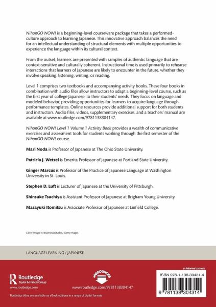 Level 1 comprises two textbooks and accompanying activity books. These four books incombination with audio files allow instructors to adapt a beginning-level course, such as the first year of collect Japanese, to their students' needs. They focus on language and modeled behavior, providing opportunities for learners to acquire language through performance templates. Online resources provide additional support for both students and instructors. Audio files, videos, supplementary exercises, and a teachers' manual are available at www.routledge.com/9781138304147.
