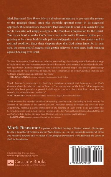 Reasoner's Now Shown Mercy is the first commentary in 500 years that returns to the quadriga (literal sense plus threefold spiritual sense) in its exegetical approach. The commentary shows how Paul understands Israel to be valued by God for its own sake, not simply as a type of the church or a preparation for the Christ. Paul views Israel as under God's mercy even as he writes Romans chapters 9-11, grieving as he is over both Israel's political subjugation in the first century and its spiritual condition. Since these chapters show that God values Israel for its own sake, the commentary's exegesis calls gentile believers to heed anew Paul's warning against boasting over Israel.