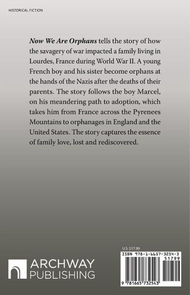 Now We Are Orphans tells the story of how the savagery of war impacted a family living in Lourdes, France during World War II. A young French boy and his sister become orphans at the hands of the Nazis after the deaths of their parents. The story follows the boy Marcel, on his meandering path to adoption, which takes him from France across the Pyrenees Mountains to orphanages in England and the United States. The story captures the essence of family love, lost and rediscovered.