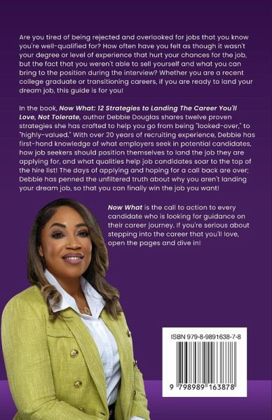 Are you tired of being rejected and overlooked for jobs that you know you're well-qualified for? How often have you felt as though it wasn't your degree or level of experience that hurt your chances for the job, but the fact that you weren't able to sell yourself and what you can bring to the position during the interview? Whether you are a recent college graduate or transitioning careers, if you are ready to land your dream job, this guide is for you! In the book, Now What: 12 Strategies to Landing The Career You'll Love, Not Tolerate, author Debbie Douglas shares twelve proven strategies she has crafted to help you go from being "looked over," to "highly valued." With over 20 years of recruiting experience, Debbie has first-hand knowledge of what employers seek in potential candidates, how job seekers should position themselves to land the job they are applying for, and what qualities help job candidates soar to the top of the hire list! The days of applying and hoping for a call back are over; Debbie has penned the unfiltered truth about why you aren't landing your dream job, so that you can finally win the job you want! Now What is the call to action to every candidate who is looking for guidance on their career journey. If you're serious about stepping into the career that you'll love, open the pages and dive in!