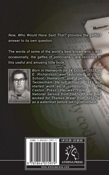 Now, Who Would Have Said That? provides the perfect answer to its own question. The words of some of the world's best known wits - and, occasionally, the gaffes of politicians - are recorded in this useful and amusing little book