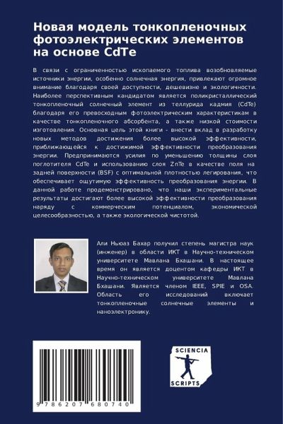 V swqzi s ogranichennost'ü iskopaemogo topliwa wozobnowlqemye istochniki änergii, osobenno solnechnaq änergiq, priwlekaüt ogromnoe wnimanie blagodarq swoej dostupnosti, deshewizne i äkologichnosti. Naibolee perspektiwnym kandidatom qwlqetsq polikristallicheskij tonkoplenochnyj solnechnyj älement iz tellurida kadmiq (CdTe) blagodarq ego prewoshodnym fotoälektricheskim harakteristikam w kachestwe tonkoplenochnogo absorbenta, a takzhe nizkoj stoimosti izgotowleniq. Osnownaq cel' ätoj knigi - wnesti wklad w razrabotku nowyh metodow dostizheniq bolee wysokoj äffektiwnosti, priblizhaüschejsq k dostizhimoj äffektiwnosti preobrazowaniq änergii. Predprinimaütsq usiliq po umen'sheniü tolschiny sloq poglotitelq CdTe i ispol'zowaniü sloq ZnTe w kachestwe polq na zadnej powerhnosti (BSF) s optimal'noj plotnost'ü legirowaniq, chto obespechiwaet oschutimuü äffektiwnost' preobrazowaniq änergii. V dannoj rabote prodemonstrirowano, chto nashi äxperimental'nye rezul'taty dostigaüt bolee wysokoj äffektiwnosti preobrazowaniq narqdu s kommercheskim potencialom, äkonomicheskoj celesoobraznost'ü, a takzhe äkologicheskoj chistotoj.
