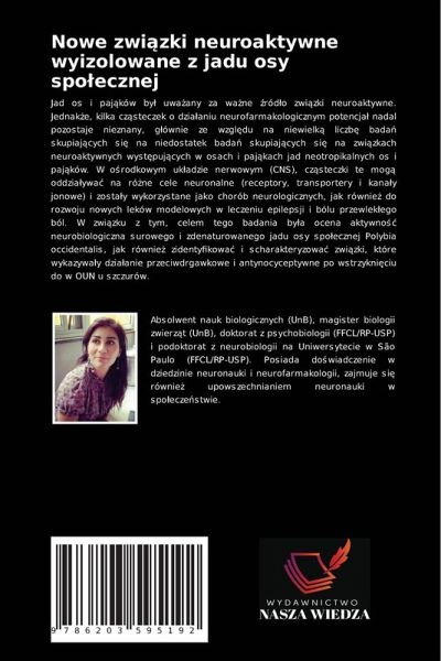 Jad os i paj¿ków by¿ uwäany za wäne ¿ród¿o zwi¿zki neuroaktywne. Jednak¿e, kilka cz¿steczek o dziäaniu neurofarmakologicznym potencjä nadal pozostaje nieznany, g¿ównie ze wzgl¿du na niewielk¿ liczb¿ badä skupiaj¿cych si¿ na niedostatek badä skupiaj¿cych si¿ na zwi¿zkach neuroaktywnych wyst¿puj¿cych w osach i paj¿kach jad neotropikalnych os i paj¿ków. W o¿rodkowym uk¿adzie nerwowym (CNS), cz¿steczki te mog¿ oddziäywä na ró¿ne cele neuronalne (receptory, transportery i kanäy jonowe) i zostäy wykorzystane jako chorób neurologicznych, jak równie¿ do rozwoju nowych leków modelowych w leczeniu epilepsji i bólu przewlek¿ego ból. W zwi¿zku z tym, celem tego badania by¿a ocena aktywno¿¿ neurobiologiczna surowego i zdenaturowanego jadu osy spo¿ecznej Polybia occidentalis, jak równie¿ zidentyfikowä i scharakteryzowä zwi¿zki, które wykazywäy dziäanie przeciwdrgawkowe i antynocyceptywne po wstrzykni¿ciu do w OUN u szczurów.