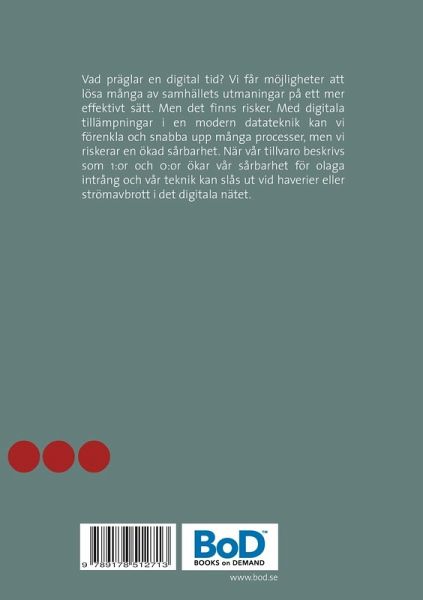 Vad präglar en digital tid? Vi får möjligheter att lösa många av samhällets utmaningar på ett mer effektivt sätt. Men det finns risker. Med digitala tillämpningar i en modern datateknik kan vi förenkla och snabba upp många processer, men vi riskerar en ökad sårbarhet. När vår tillvaro beskrivs som 1:or och 0:or ökar vår sårbarhet för olaga intrång och vår teknik kan slås ut vid haverier eller strömavbrott i det digitala nätet.