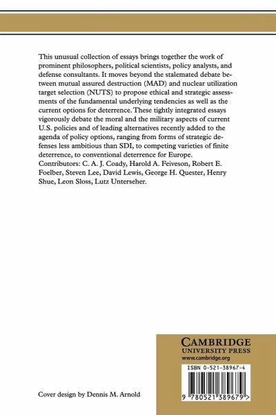 Introduction Henry Shue 1. Having it both ways: the gradual wrong turn in American strategy Henry Shue 2. Finite counterforce David Lewis 3. Deterrence and the moral use of nuclear weapons Robert E. Foelber 4. Escaping from the bomb: immoral deterrence and the problem of extrication C. A. J. Coady 5. The necessary moral hypocrisy of the slide into mutual assured destruction George H. Quester 6. Finite deterrence Harold A. Feiveson 7. Defending Europe: toward a stable conventional deterrent Lutz Unterseher 8. The case for deploying strategic defenses Leon Sloss 9. Morality, the SDI and limited nuclear war Steven Lee.