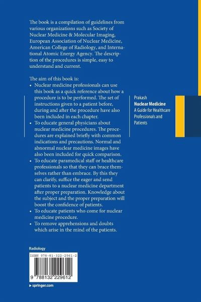 a) Nuclear medicine professionals can use this book as a quick reference about how a procedure is to be performed. The set of instructions given to patient before, during and after the procedure have also been included in each chapter.
