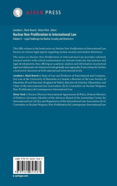 Jonathan L. Black-Branch is Dean of Law and Professor of International and Comparative Law at the University of Manitoba in Canada; a Bencher of the Law Society of Manitoba; JP and Barrister (England & Wales); Barrister & Solicitor (Manitoba); and Chair of the International Law Association (ILA) Committee on Nuclear Weapons, Non-Proliferation & Contemporary International Law. Dieter Fleck is Former Director International Agreements & Policy, Federal Ministry of Defence, Germany; Member of the Advisory Board of the Amsterdam Center for International Law (ACIL); and Rapporteur of the International Law Association (ILA) Committee on Nuclear Weapons, Non-Proliferation & Contemporary International Law.