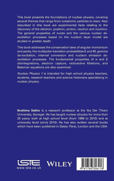 This book addresses the conservation laws of angular momentum and parity, the multipolar transition probabilities E and M, gamma de-excitation, internal conversion and nucleon emission de-excitation processes. The fundamental properties of alpha and ß disintegrations, electron capture, radioactive filiations, and Bateman equations are also examined. Nuclear Physics 1 is intended for high school physics teachers, students, research teachers and science historians specializing in nuclear physics.