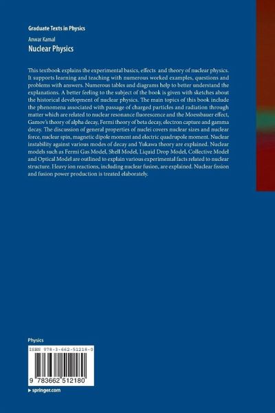 This textbook explains the experimental basics, effects and theory of nuclear physics. It supports learning and teaching with numerous worked examples, questions and problems with answers. Numerous tables and diagrams help to better understand the explanations. A better feeling to the subject of the book is given with sketches about the historical development of nuclear physics. The main topics of this book include the phenomena associated with passage of charged particles and radiation through matter which are related to nuclear resonance fluorescence and the Moessbauer effect., Gamov's…mehr