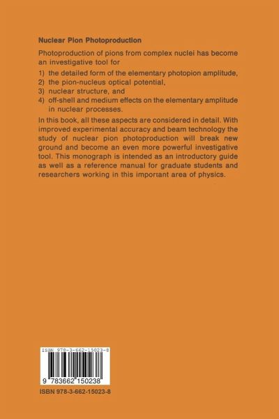 Photoproduction of pions from complex nuclei has become an investigative tool for (1) the detailed form of the elementary photopion amplitude, (2) the pion-nucleus optical potential, (3) nuclear structure, and (4) off-shell and medium effects on the elementary amplitude in nuclear processes. In this book, all these aspects are considered in detail. With improved experimental accuracy and beam tech- nology the study of nuclear pion photoproduction will break new ground and become an even more powerful investigative tool. This monograph is intended as an introductory guide as well as a reference manual for grad- uate students and researchers working in this important area of physics.
