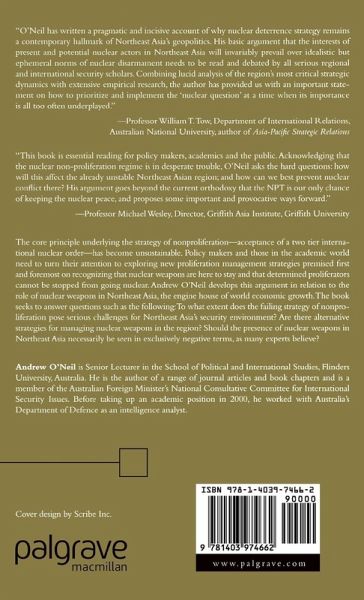 "O'Neil has written a pragmatic and incisive account of why nuclear deterrence strategy remains a contemporary hallmark of Northeast Asia's geopolitics. His basic argument that the interests of present and potential nuclear actors in Northeast Asia will invariably prevail over idealistic but ephemeral norms of nuclear disarmament needs to be read and debated by all serious regional and international security scholars.Combining lucid analysis of the region's most critical strategic dynamics with extensive empirical research, the author has provided us with an important statement on how to prioritise and implement the 'nuclear question' at a time when its importance is all too often underplayed." - Professor William T. Tow, Department of International Relations, Australian National University, author of Asia-Pacific Strategic Relations"This book is essential reading for policy makers, academics and the public. Acknowledging that the nuclear non-proliferation regime is in desperate trouble, O'Neill asks the hard questions: how will this affect the already unstable Northeast Asian region; and how can we best prevent nuclear conflict there? His argument goes beyond the current orthodoxy that the NPT is our only chance of keeping the nuclear peace, and proposes some important and provocative ways forward."