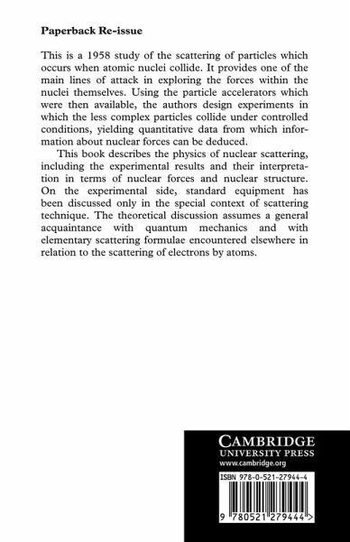 This is a 1958 study of the scattering of particles which occurs when atomic nuclei collide. It provides one of the main lines of attack in exploring the forces within the nuclei themselves. Using the particle accelerators which were then available, the authors design experiments in which the less complex particles collide under controlled conditions, yielding quantitative data from which information about nuclear forces can be deduced. This book describes the physics of nuclear scattering, including the experimental results and their interpretation in terms of nuclear forces and nuclear structure. On the experimental side, standard equipment has been discussed only in the special context of scattering technique. The theoretical discussion assumes a general acquaintance with quantum mechanics and with elementary scattering formulae encountered elsewhere in relation to the scattering of electrons by atoms.