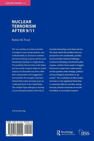 1. Introduction 2. Nuclear terrorism - an overview 3. Terrorist Nuclear Weapons 4. The Nuclear Black Market 5. Improvised Nuclear Devices (INDs) 6. Amateur and 'Low End' Weapons Design 7. The Nth Country Experiment 8. The Teenager's 10kt Beachball 9. An Artistic Representation of the Fat Man 10. South Africa: Quick and Dirty Bombs? 11. An Unholy Bomb: the Aum Shinrikyo 12. 'Loose' Russian nuclear weapons 13. Terrorist Psychology, Motivation, and Strategy 14. Psycho Killer, Qu'est Que C'est? 15. Motivation and Constraints 16. Nationalists/Separatists 17. Social-Revolutionaries 18. Right-Wing Terrorism 19. Religious Terrorism 20. Single-issue terrorism 21. Terrorism and Nuclear Deterrence 22. Is Al Qa'ida a Nuclear Threat? 23. Al Qa'ida and Jihadist Strategy