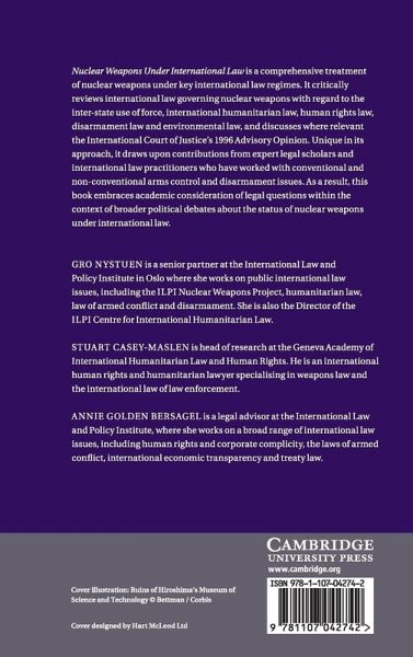 List of contributors; Foreword Charles Garraway; Editors' preface; Disclaimer; Introduction Gro Nystuen and Stuart Casey-Maslen; Part I. Nuclear Weapons and Jus Ad Bellum: 1. Using force by means of nuclear weapons and requirements of necessity and proportionality ad bellum Nobuo Hayashi; 2. Legality under jus ad bellum of the threat of use of nuclear weapons Nobuo Hayashi; 3. Nuclear weapons and the separation of jus ad bellum and jus in bello Jasmine Moussa; Part II. Nuclear Weapons and International Humanitarian Law: 4. The use of nuclear weapons under rules governing the conduct of hostilities Stuart Casey-Maslen; 5. Nuclear weapons and the unnecessary suffering rule Simon O'Connor; 6. Threats of use of nuclear weapons and international humanitarian law Gro Nystuen; 7. The use of nuclear weapons as a reprisal under international humanitarian law Stuart Casey-Maslen; Part III. International Criminal Law: 8. Use of nuclear weapons as genocide, a crime against humanity, or a war crime Stuart Casey-Maslen; 9. Use of nuclear weapons as an international crime and the Rome Statute of the International Criminal Court Annie Golden Bersagel; Part IV. International Environmental Law: 10. Use of nuclear weapons and protection of the environment during international armed conflict Erik V. Koppe; 11. Environmental approaches to nuclear weapons Martina Kunz and Jorge E. Viñuales; 12. The testing of nuclear weapons under international law Don MacKay; Part V. International Disarmament Law: 13. International law, nuclear weapon-free zones, and the proposed zone free of weapons of mass destruction in the Middle East Marco Roscini; 14. Nuclear weapon-free zones: the political context Cecilie Hellestveit and Daniel Mekonnen; 15. The Nuclear Non-Proliferation Treaty Gro Nystuen and Torbjørn Graff Hugo; 16. The legal meaning and implications of Article VI of the Non-Proliferation Treaty Daniel H. Joyner; 17. Armed non-state actors and 'nuclear terrorism' Stuart Casey-Maslen; Part VI. International Human Rights Law: 18. Human rights law and nuclear weapons Louise Doswald-Beck; 19. The right to a remedy and reparation for the use of nuclear weapons Stuart Casey-Maslen; Part VII. The Legality of Nuclear Weapons under International Law: 20. Conclusions on the status of nuclear weapons under international law Gro Nystuen.