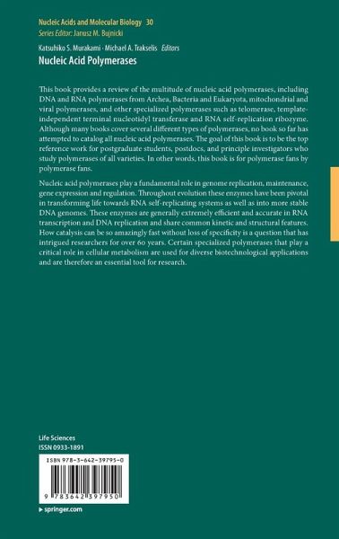 This book provides a review of the multitude of nucleic acid polymerases, including DNA and RNA polymerases from Archea, Bacteria and Eukaryota, mitochondrial and viral polymerases, and other specialized polymerases such as telomerase, template-independent terminal nucleotidyl transferase and RNA self-replication ribozyme. Although many books cover several different types of polymerases, no book so far has attempted to catalog all nucleic acid polymerases. The goal of this book is to be the top reference work for postgraduate students, postdocs, and principle investigators who study polymerases of all varieties. In other words, this book is for polymerase fans by polymerase fans.