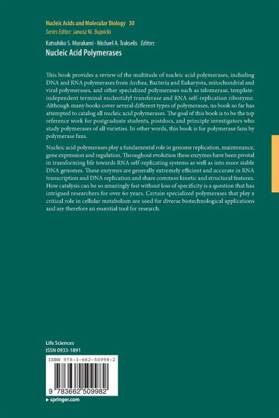 This book provides a review of the multitude of nucleic acid polymerases, including DNA and RNA polymerases from Archea, Bacteria and Eukaryota, mitochondrial and viral polymerases, and other specialized polymerases such as telomerase, template-independent terminal nucleotidyl transferase and RNA self-replication ribozyme. Although many books cover several different types of polymerases, no book so far has attempted to catalog all nucleic acid polymerases. The goal of this book is to be the top reference work for postgraduate students, postdocs, and principle investigators who study polymerases of all varieties. In other words, this book is for polymerase fans by polymerase fans.