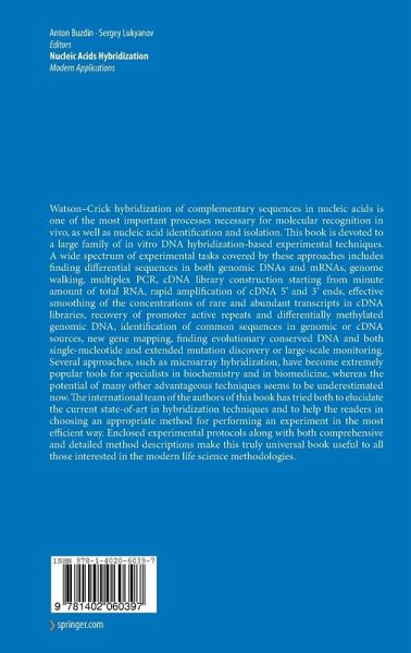 Nucleic Acids Hybridization: Potentials and Limitations.- Selective Suppression of Polymerase Chain Reaction and Its Most Popular Applications.- Suppression Subtractive Hybridization.- Stem-Loop Oligonucleotides as Hybridization Probes and Their Practical Use in Molecular Biology and Biomedicine.- Normalization of cDNA Libraries.- Primer Extension Enrichment Reaction (PEER) and Other Methods for Difference Screening.- Subtractive Hybridization with Covalently Modified Oligonucleotides.- Coincidence Cloning: Robust Technique for Isolation of Common Sequences.- DNA Hybridization in Solution for Mutation Detection.- Current Attempts to Improve the Specificity of Nucleic Acids Hybridization.- Concepts on Microarray Design for Genome and Transcriptome Analyses.