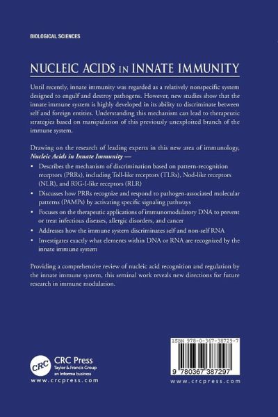 Providing insight into new areas of immunology, this book explains the roles of nucleic acids in immunity, describing the mechanism of discrimination based on pattern-recognition receptors (PRRs). Chapters discuss how these PRRs recognize and respond to pathogen-associated molecular patterns (PAMPs) by activating specific signaling pathways. The book focuses on the therapeutic applications of immunomodulatory DNA to prevent or treat infectious diseases, allergic disorders, and cancer and addresses how the immune system discriminates self and non-self RNA. Contributions review recent advances to understand exactly what elements within DNA or RNA activate the innate immune recognition of nucleic acids and describe the resulting immune modulation.