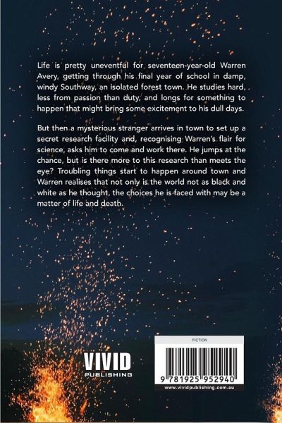 Life is pretty uneventful for seventeen-year-old Warren Avery, getting through his final year of school in damp, windy Southway, an isolated forest town. He studies hard, less from passion than duty, and longs for something to happen that might bring some excitement to his dull days. But then a mysterious stranger arrives in town to set up a secret research facility and, recognising Warren's flair for science, asks him to come and work there. He jumps at the chance, but is there more to this research than meets the eye? Troubling things start to happen around town and Warren realises that not only is the world not as black and white as he thought, the choices he is faced with may be a matter of life and death.