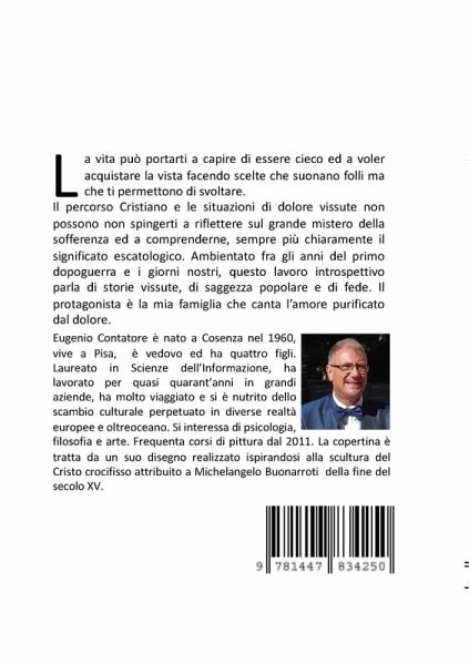 La vita può portarti a capire di essere cieco ed a voler acquistare la vista facendo scelte che suonano folli ma che ti permettono di svoltare. Il percorso Cristiano e le situazioni di dolore vissute non possono non spingerti a riflettere sul grande mistero della sofferenza ed a comprenderne, sempre più chiaramente il significato escatologico. Ambientato fra gli anni del primo dopoguerra e i giorni nostri, questo racconto parla di storie vissute, di cancro, di Covid, di saggezza popolare e di fede. Il protagonista è la mia famiglia che canta l'amore purificato dal dolore