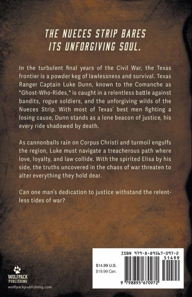The Nueces Strip bares its unforgiving soul. In the turbulent final years of the Civil War, the Texas frontier is a powder keg of lawlessness and survival. Texas Ranger Captain Luke Dunn, known to the Comanche as "Ghost-Who-Rides," is caught in a relentless battle against bandits, rogue soldiers, and the unforgiving wilds of the Nueces Strip. With most of Texas' best men fighting a losing cause, Dunn stands as a lone beacon of justice, his every ride shadowed by death. As cannonballs rain on Corpus Christi and turmoil engulfs the region, Luke must navigate a treacherous path where love, loyalty, and law collide. With the spirited Elisa by his side, the truths uncovered in the chaos of war threaten to alter everything they hold dear. Can one man's dedication to justice withstand the relentless tides of war?