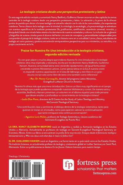 En esta segunda edición revisada y aumentada Nancy Bedford y Guillermo Hansen recorren en diez capítulos los temas centrales de la teología cristiana desde una perspectiva protestante y latina. La adoración y la praxis de fe ofrecen puntos de partida que ubican a la tarea teológica en estrecha relación con la vida de las comunidades y las experiencias cotidianas. Temas clásicos de la teología como la trinidad, la cristología, la escatología y la pneumatología, se entrelazan con acentos específicos de la tradición protestante (fe, justificación, santificación, sacerdocio universal, vocación, discipulado) desde una mirada latina atenta a los derroteros de nuestras sociedades y culturas. La inclusión de un glosario y biografía de autores citados pone al alcance del lector una serie de conceptos y personalidades indispensables para comprender el paisaje de la teología cristiana, tanto en su historia como en su actualidad. Laicos y laicas, estudiantes de teología así como pastores y pastoras encontrarán enriquecedoras perspectivas para sus ministerios, sus estudios, o su propio crecimiento en la fe. In this revised and expanded second edition Nancy Bedford and Guillermo Hansen cover the central themes of Christian theology from a Protestant and Latin perspective in ten chapters. Worship and the praxis of faith offer starting points that place the theological task in close relationship with the life of communities and daily experiences. Classic themes of theology such as the trinity, christology, eschatology, and pneumatology are intertwined with specific accents of the Protestant tradition (faith, justification, sanctification, universal priesthood, vocation, discipleship) from a Latin perspective attentive to the present state of our societies and cultures. The inclusion of a glossary and biographies of cited authors makes available to the reader a series of concepts and personalities indispensable for understanding the landscape of Christian theology, both in its history and in the present. Lay people, theology students, and pastors will find enriching perspectives for their ministry, their studies, or their own faith formation.