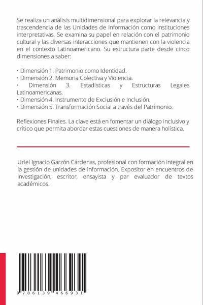 Se realiza un análisis multidimensional para explorar la relevancia y trascendencia de las Unidades de Información como instituciones interpretativas. Se examina su papel en relación con el patrimonio cultural y las diversas interacciones que mantienen con la violencia en el contexto Latinoamericano. Su estructura parte desde cinco dimensiones a saber:¿ Dimensión 1. Patrimonio como Identidad. ¿ Dimensión 2. Memoria Colectiva y Violencia. ¿ Dimensión 3. Estadísticas y Estructuras Legales Latinoamericanas. ¿ Dimensión 4. Instrumento de Exclusión e Inclusión. ¿ Dimensión 5. Transformación Social a través del Patrimonio. Reflexiones Finales. La clave está en fomentar un diálogo inclusivo y crítico que permita abordar estas cuestiones de manera holística.