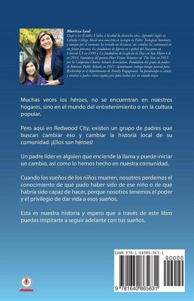 Muchas veces los héroes, no se encuentran en nuestros hogares, sino en el mundo del entretenimiento o en la cultura popular. Pero aquí en Redwood City, existen un grupo de padres que buscan cambiar eso y cambiar la historia local de su comunidad. ¡Ellos son héroes! Un padre líder es alguien que enciende la llama y puede iniciar un cambio, asi como lo hemos hecho en nuestra comunidad. Cuando los sueños de los niños mueren, nosotros perdemos el conocimiento de qué pudo haber sido de ese niño o de qué habría sido capaz de hacer, porque nosotros tenemos el poder y el privilegio de dar vida a esos sueños. Esta es nuestra historia y espero que a través de este libro puedas inspirarte a seguir adelante con tus sueños.
