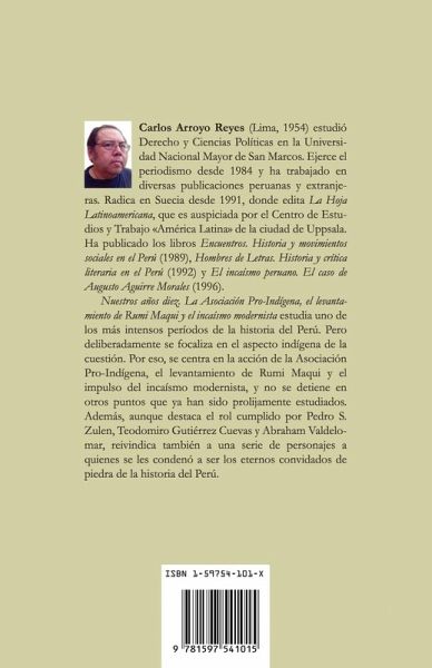 Nuestros años diez trata sobre el indigenismo, los levantamientos indigenas y el incaismo modernista en el Peru de la decada de 1910. Este libro estudia uno de los mas intensos periodos de la historia del Peru. Pero deliberadamente focaliza en el aspecto indigena de la cuestion. Por eso, se centra en la accion de la Asociacion Pro-Indigena, el levantamiento de Rumi Maqui y el impulso del incaismo modernista, y no se detiene en otros puntos que ya han sido prolijamente estudiados. Ademas, aunque destaca el rol cumplido por Pedro S. Zulen, Teodomiro Gutierrez Cuevas y Abraham Valdelomar, reivindica tambien a una serie de personajes que se les condeno a ser los eternos convidados de piedra de la historia del Peru.