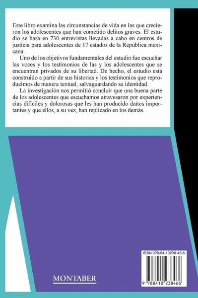 Este libro examina las circunstancias de vida en las que crecieron los adolescentes que han cometido delitos graves. El estudio se basa en 730 entrevistas llevadas a cabo en centros de justicia para adolescentes de 17 estados de la República mexicana. Uno de los objetivos fundamentales del estudio fue escuchar las voces y los testimonios de las y los adolescentes que se encuentran privados de su libertad. De hecho, el estudio está construido a partir de sus historias y los testimonios que reproducimos de manera textual, salvaguardando su identidad. La investigación nos permitió concluir que una buena parte de los adolescentes que escuchamos atravesaron por experiencias difíciles y dolorosas que les han producido daños importantes y que ellos, a su vez, han replicado en los demás.