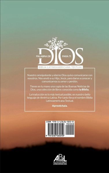 Nuevo Pacto, Salmos y Proverbios Palabra de Dios para ti: Biblia Latinoamericana Textual (Word of God for you, Latin American Textual Bible). Este libro es una colección de libros conocida como la Biblia, las Buenas Noticias de Dios, en la cual Dios se da a conocer y comunicarnos su amor y perdón. La traducción es lo más textual posible, en el bello lenguaje de América Latina. Por tanto, lleva por nombre Palabra de Dios para ti, Biblia Latinoamericana Textual. La singularidad de esta versión está en que se esfuerza por ser lo más textual o literal posible, y se presenta en lengua básica latinoamericana. Su estilo es claro, sencillo y breve. Se conserva la relación contextual de toda la Biblia. Conserva en hebreo los nombres de Dios en el Antiguo Pacto, como Yavé, 'Elohim y 'El-Shadday. Los textos originales que sirven como base son la 27ª edición del Novum Testamentum Graece Nestle-Aland y la Biblia Hebraica Stuttgartensia. Palabra de Dios para ti, Biblia Latinoamericana Textual se puede copiar libremente sin regalías. Esto significa que quien desea citar las Escrituras evitará las engorrosas restricciones de otras traducciones modernas. Investigadores y autores pueden citar esta Biblia ampliamente sin solicitar permiso o pagar regalías al editor, ni siquiera sea publicada en un libro para la venta. English Description: This book is a collection of books known as the Bible, the Good News of God, in which God makes himself known and communicates his love and forgiveness to us. The translation follows the original language texts as closely as possible, in the beautiful language of Latin American Spanish. The uniqueness of this version is that it strives to be as textual or literal as possible, and it is presented in the basic Latin American Spanish language. The style is clear, simple and brief. The contextual relationship of the entire Bible is preserved. It preserves in Hebrew the names of God in the Old Covenant, such as Yahweh, 'Elohim, and 'El-Shadday. The original texts that serve as the basis are the 27th edition of the Novum Testamentum Graece by Nestle and Aland and the Biblia Hebraica Stuttgartensia. This Bible translation may be freely copied without royalties. This means that anyone who wishes to quote Scripture will avoid the cumbersome restrictions of other modern translations. Researchers and authors can quote this Bible widely without requesting permission or paying royalties to the publisher, even if it is published in a book for sale. Nuestro omnipotente y eterno Dios quiso comunicarse con nosotros. Nos envió a su Hijo, Jesús, para darse a conocer y comunicarnos su amor y perdón. Tienes en tu mano una copia de las Buenas Noticias de Dios, una colección de libros conocida como la Biblia. La traducción es lo más textual posible, en nuestro bello lenguaje de América Latina. Por tanto lleva el nombre Palabra de Dios para ti: Biblia Latinoamericana Textual. Aprovéchala.