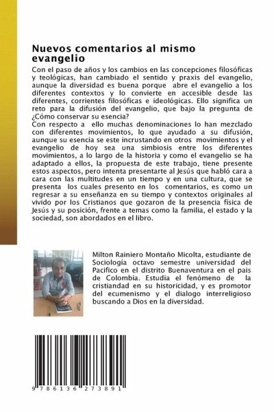 Con el paso de años y los cambios en las concepciones filosóficas y teológicas, han cambiado el sentido y praxis del evangelio, aunque la diversidad es buena porque abre el evangelio a los diferentes contextos y lo convierte en accesible desde las diferentes, corrientes filosóficas e ideológicas. Ello significa un reto para la difusión del evangelio, que bajo la pregunta de ¿Cómo conservar su esencia? Con respecto a ello muchas denominaciones lo han mezclado con diferentes movimientos, lo que ayudado a su difusión, aunque su esencia se este incrustando en otros movimientos y el evangelio de hoy sea una simbiosis entre los diferentes movimientos, a lo largo de la historia y como el evangelio se ha adaptado a ellos, la propuesta de este trabajo, tiene presente estos aspectos, pero intenta presentarte al Jesús que habló cara a cara con las multitudes en un tiempo y en una cultura, que se presenta los cuales presento en los comentarios, es como un regresar a su enseñanza en su tiempo y contextos originales al vivido por los Cristianos que gozaron de la presencia física de Jesús y su posición, frente a temas como la familia, el estado y la sociedad, son abordados en el libro.