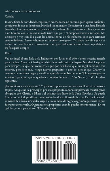Año nuevo, nuevos propósitos... Caridad Ir a una fiesta de Navidad de empresa en Nochebuena no es como quería pasar las fiestas, considerando que es la primera Navidad sin mi madre. No quiero ir a una fiesta llena de borrachos buscando una forma de escapar de su dolor. Pero estando en la fiesta, conozco a un hombre con la misma mirada triste que yo, y él tampoco quiere estar aquí. Me desespero y voy con él a pasar las últimas horas de Nochebuena, solo para terminar enamorándome. Pero este hombre no es quien creo que es. Y cuando descubra quién es realmente, estas fiestas se convertirán en un gran dolor con un gran lazo... o podría ser mi feliz para siempre. Rhett Veo un ángel al otro lado de la habitación con luces en el pelo y ahora necesito tenerla para respirar. Antes de Charity, no vivía. Pero no la quiero solo para Navidad. La quiero para siempre. Sé que he hecho cosas que podrían hacer que mi ángel cuestione mis motivos, pero este año... tengo nuevos propósitos y uno de ellos es que Charity se enamore de mi alma negra y me dé su corazón a cambio del mío. Solo espero que sea suficiente para que quiera quedarse conmigo durante el Año Nuevo y todos los días siguientes. ¡Bienvenidos a un nuevo año! Y planeo empezar con un romance lleno de secretos y tropos. Así que no se preocupen por esos propósitos ahora, simplemente manténganse abrigados con Charity y Rhett y el decimoctavo libro de la Serie Navideña. Se puede leer de forma independiente, como todos los demás libros de la serie. Este está lleno de romance de oficina, una dulce virgen y un hombre de negocios gruñón que haría lo que fuera por conservarla. ¿Quién necesita propósitos cuando puedes tener romance? En mi opinión, es una palabra con "R" mucho mejor.