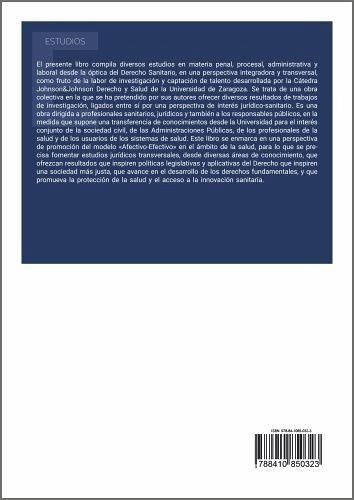 Este libro recopila estudios sobre Derecho Penal, Procesal, Administrativo y Laboral desde la perspectiva del Derecho Sanitario, fruto de la investigación de la Cátedra Johnson&Johnson Derecho y Salud de la Universidad de Zaragoza. Con un enfoque integrador y transversal, la obra busca transferir conocimientos jurídicos aplicados al ámbito sanitario a profesionales de la salud, del derecho y responsables públicos. Además, promueve un modelo ?Afectivo-Efectivo? para avanzar en los derechos fundamentales, la protección de la salud y el acceso a la innovación sanitaria, inspirando políticas legislativas y aplicativas que favorezcan una sociedad más justa.