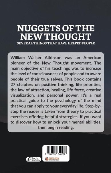 William Walker Atkinson was an American pioneer of the New Thought movement. The main objective of his teachings was to increase the level of consciousness of people and to aware people of their true selves. This book contains 27 chapters on positive thinking, life priorities, the law of attraction, healing, life force, creative visualization, and personal power. It's a real practical guide to the psychology of the mind that you can apply to your everyday life. Step-by-step the reader is taken from theory to practical exercises offering helpful strategies. If you want to discover how to unlock your mental abilities, then begin reading.