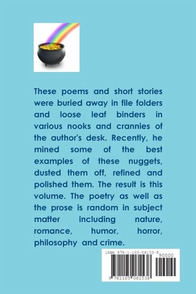 These poems and short stories were buried away in file folders, loose-leaf binders and spiral notebooks in various nooks and crannies of the author's desk and shelves. Recently, he mined some of the best examples of these nuggets, dusted them off, refined and polished them. The result is this volume. The poetry as well as the prose is random in subject matter including nature, romance, humor, horror, philosophy, and crime.