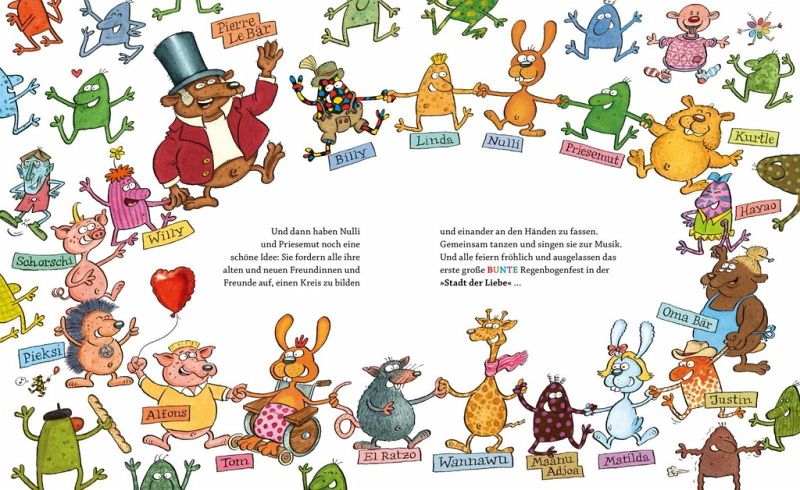 Vielfalt und Toleranz: Eine Geschichte, die zeigt, wie Unterschiede unsere Welt bereichern.Freundschaft über Grenzen hinweg: Nulli und Priesemut beweisen, dass wahre Freundschaft keine Grenzen kennt.Feier der Gemeinschaft: Das Regenbogenfest symbolisiert das fröhliche Zusammenkommen aller, unabhängig von Herkunft oder Art.
