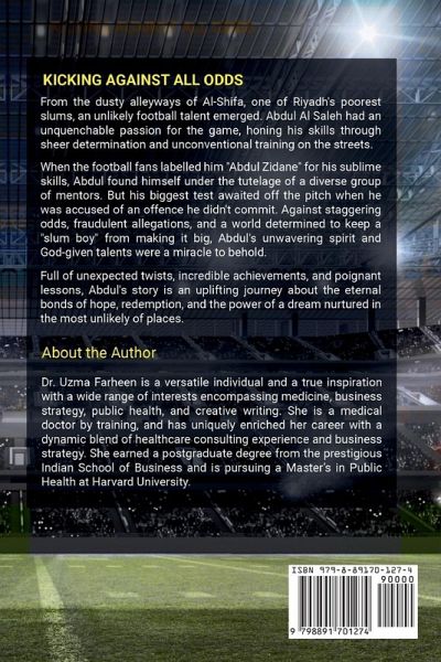 From the dusty alleyways of Al-Shifa, one of Riyadh's poorest slums, an unlikely football talent emerged. Abdul Al Saleh had an unquenchable passion for the game, honing his skills through sheer determination and unconventional training on the streets. When the football fans labelled him "Abdul Zidane" for his sublime skills, Abdul found himself under the tutelage of a diverse group of mentors. But his biggest test awaited off the pitch when he was accused of an offence he didn't commit. Against staggering odds, fraudulent allegations, and a world determined to keep a "slum boy" from making it big, Abdul's unwavering spirit and God-given talents were a miracle to behold. Full of unexpected twists, incredible achievements, and poignant lessons, Abdul's story is an uplifting journey about the eternal bonds of hope, redemption, and the power of a dream nurtured in the most unlikely of places.
