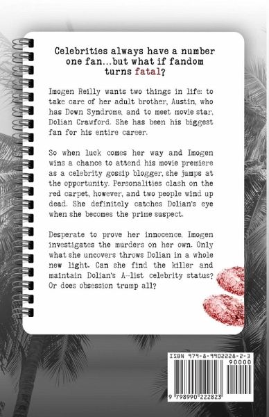 Imogen Reilly wants two things in life: to take care of her adult brother, Austin, who has Down Syndrome, and to meet movie star, Dolian Crawford. She has been his biggest fan for his entire career. So when luck comes her way and Imogen wins a chance to attend his movie premiere as a celebrity gossip blogger, she jumps at the opportunity. Personalities clash on the red carpet, however, and two people wind up dead. She definitely catches Dolian's eye when she becomes the prime suspect. Desperate to prove her innocence, Imogen investigates the murders on her own. Only what she uncovers throws Dolian in a whole new light. Can she find the killer and maintain Dolian's A-list celebrity status? Or does obsession trump all?