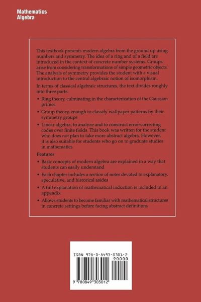 This textbook presents modern algebra from the ground up using numbers and symmetry. The idea of a ring and of a field are introduced in the context of concrete number systems. Groups arise from considering transformations of simple geometric objects. The analysis of symmetry provides the student with a visual introduction to the central algebraic notion of isomorphism. Designed for a typical one-semester undergraduate course in modern algebra, it provides a gentle introduction to the subject by allowing students to see the ideas at work in accessible examples, rather than plunging them immediately into a sea of formalism. The student is involved at once with interesting algebraic structures, such as the Gaussian integers and the various rings of integers modulo n, and is encouraged to take the time to explore and become familiar with those structures. In terms of classical algebraic structures, the text divides roughly into three parts: