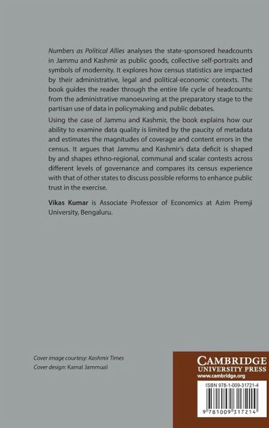 Numbers as Political Allies analyses the state sponsored headcounts in Jammu and Kashmir as public goods, collective self-portraits, and symbols of modernity. It explores how census statistics are impacted by their administrative, legal and political-economic contexts. The book guides the reader through the entire lifecycle of headcounts from the administrative manoeuvring at the preparatory stage to the partisan use of data in policymaking and public debates. Using the case of Jammu and Kashmir, it explains how our ability to examine data quality is limited by the paucity of metadata and estimates the magnitudes of coverage and content errors in the census process. It argues that Jammu and Kashmir's data deficit is shaped by and shapes ethno-regional, communal, and scalar contests across different levels of governance and compares its census experience with other states to discuss possible reforms to enhance public trust in the census.
