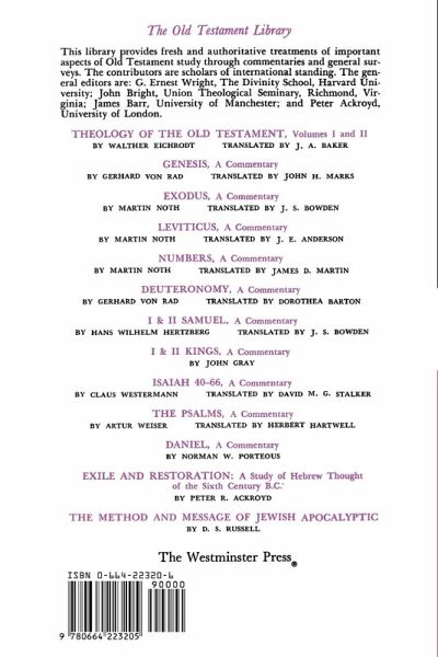 In this examination of Numbers, Martin Noth explores the community of the twelve tribes, the organization of the Levites, various divine ordinances, and other important themes in the book of Numbers. Also included is an appendix on daughters' rights of inheritance. The Old Testament Library provides fresh and authoritative treatments of important aspects of Old Testament study through commentaries and general surveys. The contributors are scholars of international standing.