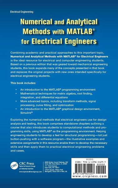 Numerical Methods for Electrical Engineers. MATLAB® Fundamentals. Matrices. Roots of Algebraic and Transcendental Equations. Numerical Integration. Numerical Integration of Ordinary Differential Equations. Laplace Transforms. Fourier Transforms and Signal Processing. Curve Fitting. Optimization. Simulink. Appendices. MATLAB® Function Index.
