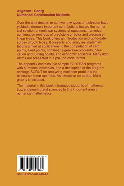 Over the past fifteen years two new techniques have yielded extremely important contributions toward the numerical solution of nonlinear systems of equations. This book provides an introduction to and an up-to-date survey of numerical continuation methods (tracing of implicitly defined curves) of both predictor-corrector and piecewise-linear types. It presents and analyzes implementations aimed at applications to the computation of zero points, fixed points, nonlinear eigenvalue problems, bifurcation and turning points, and economic equilibria. Many algorithms are presented in a pseudo code format. An appendix supplies five sample FORTRAN programs with numerical examples, which readers can adapt to fit their purposes, and a description of the program package SCOUT for analyzing nonlinear problems via piecewise-linear methods. An extensive up-to-date bibliography spanning 46 pages is included. The material in this book has been presented to students of mathematics, engineering andsciences with great success, and will also serve as a valuable tool for researchers in the field.
