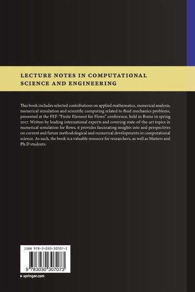 This book includes selected contributions on applied mathematics, numerical analysis, numerical simulation and scientific computing related to fluid mechanics problems, presented at the FEF-"Finite Element for Flows" conference, held in Rome in spring 2017. Written by leading international experts and covering state-of-the-art topics in numerical simulation for flows, it provides fascinating insights into and perspectives on current and future methodological and numerical developments in computational science. As such, the book is a valuable resource for researchers, as well as Masters and Ph.D students.