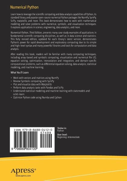 Numerical Python, Third Edition, presents many case study examples of applications in fundamental scientific computing disciplines, as well as in data science and statistics. This fully revised edition, updated for each library's latest version, demonstrates Python's power for rapid development and exploratory computing due to its simple and high-level syntax and many powerful libraries and tools for computation and data analysis.