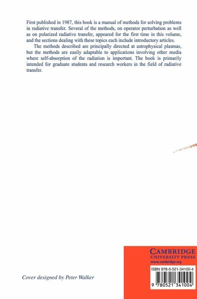 First published in 1988, this book is a manual of methods for solving problems in radiative transfer. Several of the methods, on operator perturbation as well as on polarised radiative transfer, appeared for the first time in this volume, and the sections dealing with these topics each include introductory articles. The methods described are principally directed at astrophysical plasmas, but the methods are easily adaptable to applications involving other media where self-absorption of the radiation is important. The book is primarily intended for graduate students and research workers in the field of radiative transfer.